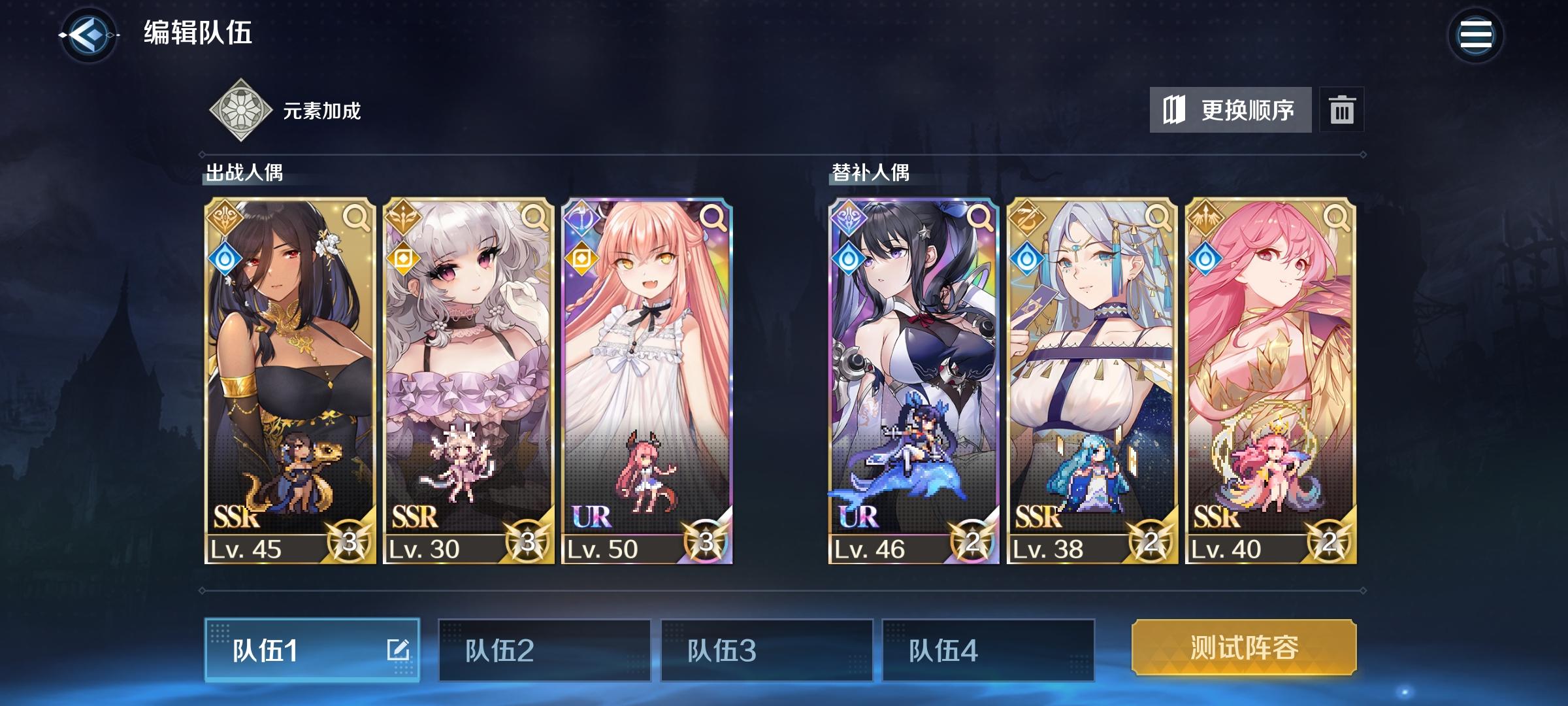 接上一条视频 这是练度和伤害分布 龙女属性跟面具差不多 1万攻5万血 暗奶只有6千攻