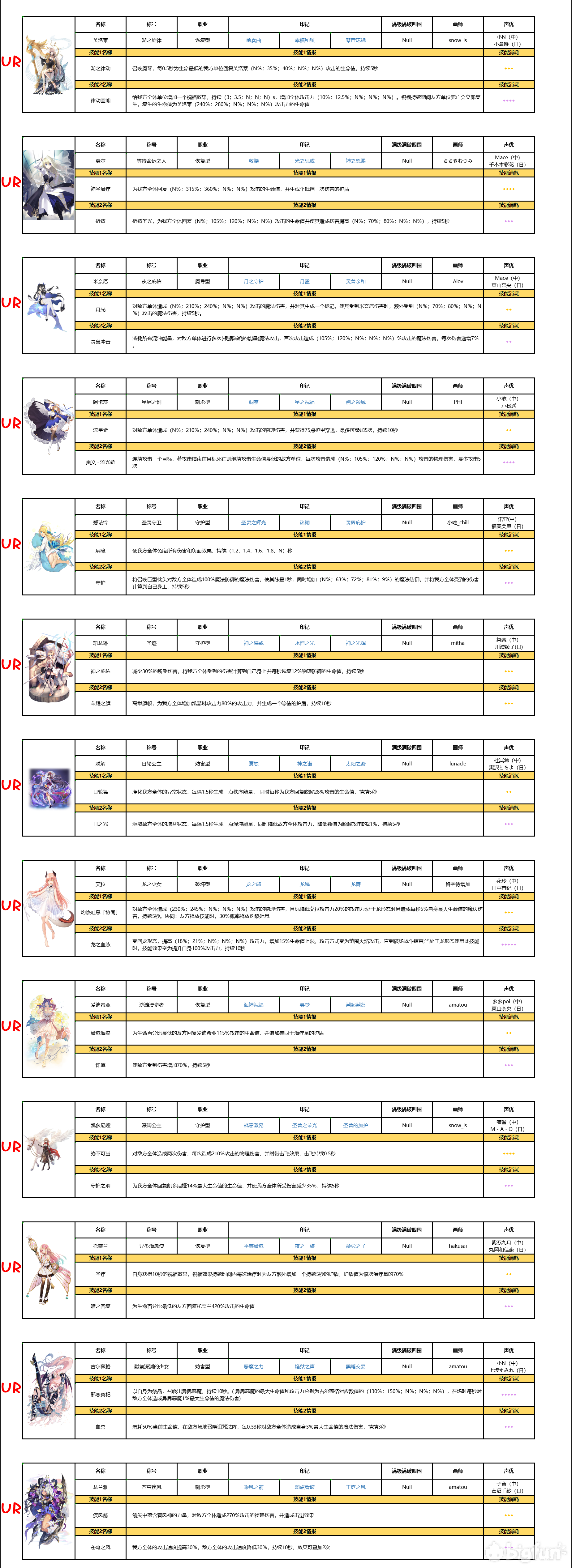 以前的一个表,出处忘了,好像是b站魔女论坛。