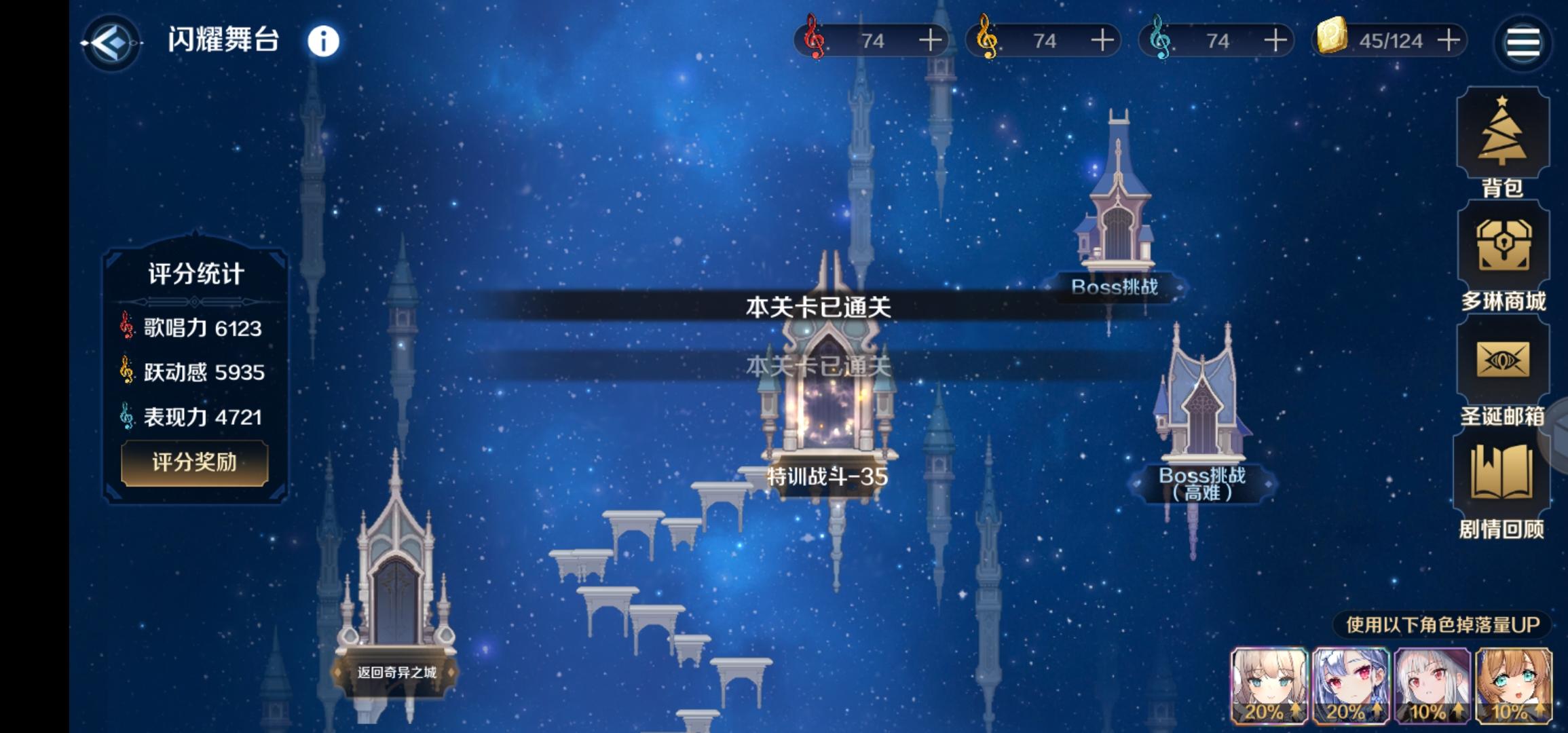 三系除了黄的都能组两队了赤完特训了,3个角色的打,一天打完要21个角色堆抽强拿偶像金花瓣换了凯瑟琳还有这个活动不太适合刷玛那,满加成也就那样