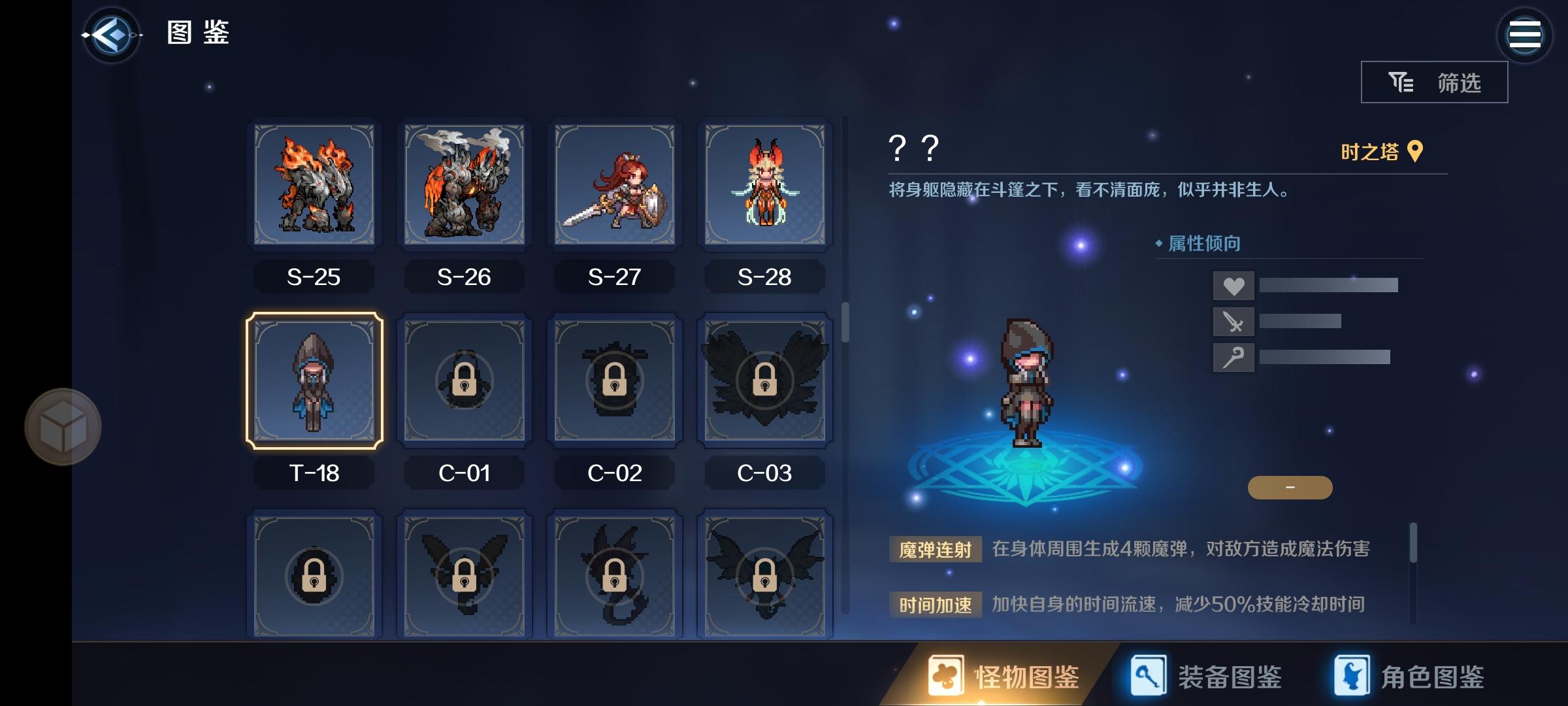 刚玩不久,通关了第4章,发现关卡4.5-1的这两只怪物不在怪物图鉴里。而且恶魔甲虫跟图鉴里的??都是T-18,恶魔犬跟关卡3.5-6的德亚丝都是T-20。