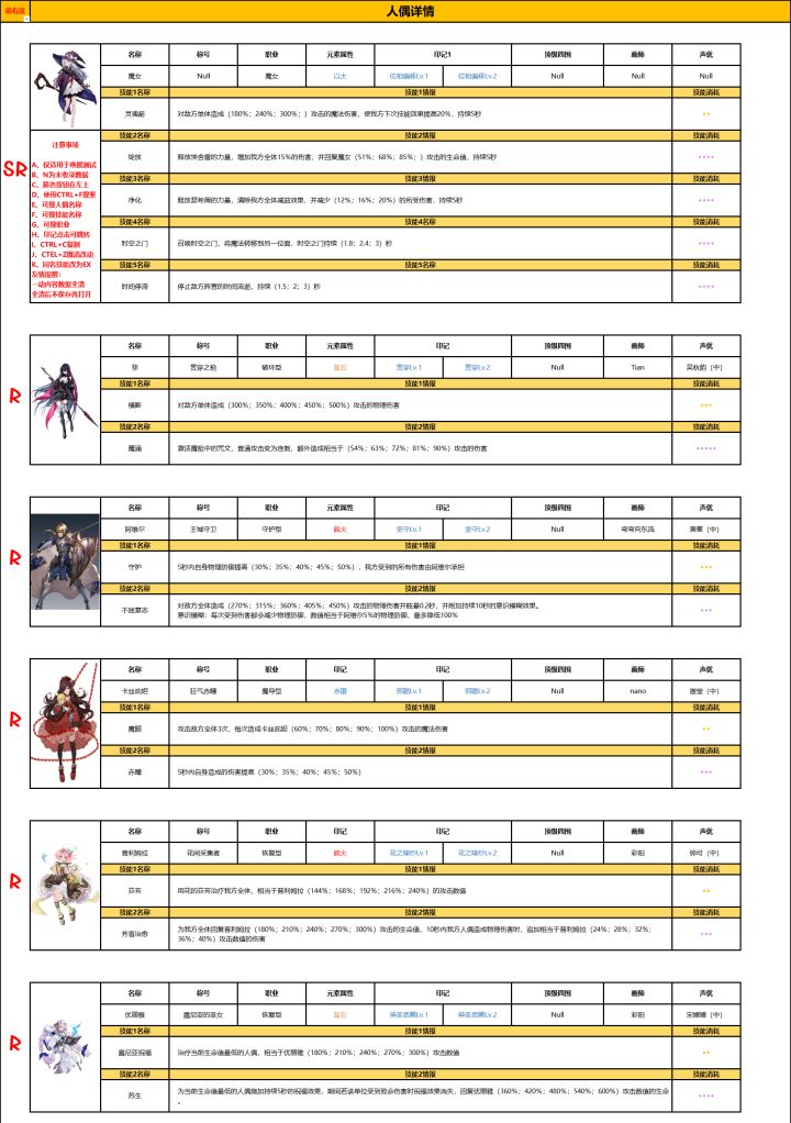 人偶详情 — R&主角人偶详情 — SR人偶详情 — SSR人偶详情 — UR人偶详情 — EX印记列表装备特效