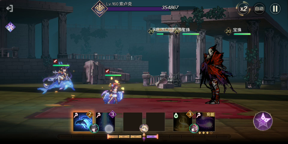 特意挑了一个全部四阶人机,对面天马被动技能可以自己净化掉debuff破甲,所以打久了一些。 我这边就一个四阶龙女+二个二阶。😒