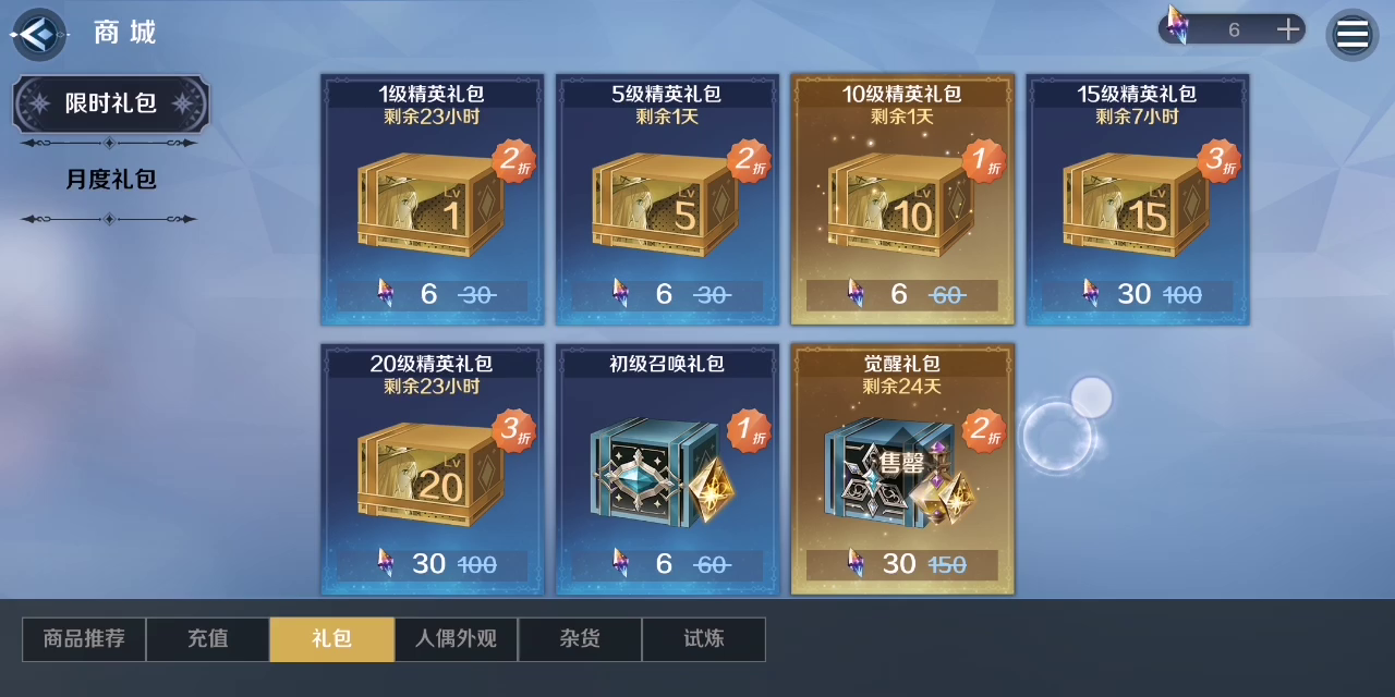 礼包bug我真吐了,我想买还买不了,就等着这点材料呢