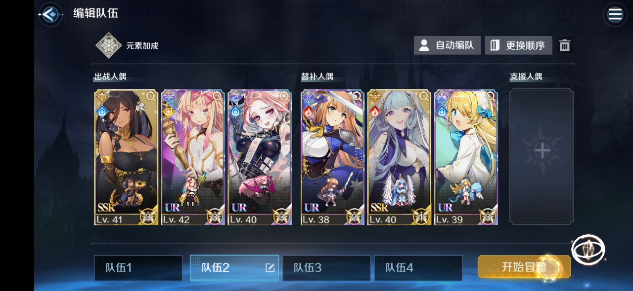 队伍只有二破剑圣20级,两个一破33级,其他都是没破的😐,总得说还是很暴力