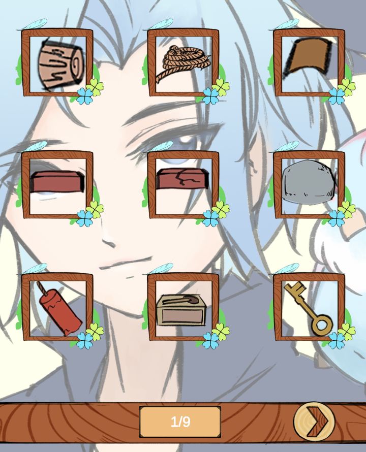 1.拿塞子塞水管⭐2.拿瓦片撬锁⭐3.点墙获得四块砖块,用三块好砖垫脚拿下火柴,把蜡烛放正用火柴引燃。——用大石块砸锁⭐/拿坏砖垫脚⭐4.取火把点香,取香灰灭火,解下侧边绳,以绳结天梁,取佛首,系悬绳。——移开坐垫触发机关⭐/不灭火取下绳子⭐5.用三片瓦片砸在台阶前拿起蘑菇,网上的树叶,鸟羽,按照要求形状摆在窗下,拿三根绳子组成网,把网拖到树上,解开绳索⭐6.去右边点左边的藤条,拿金