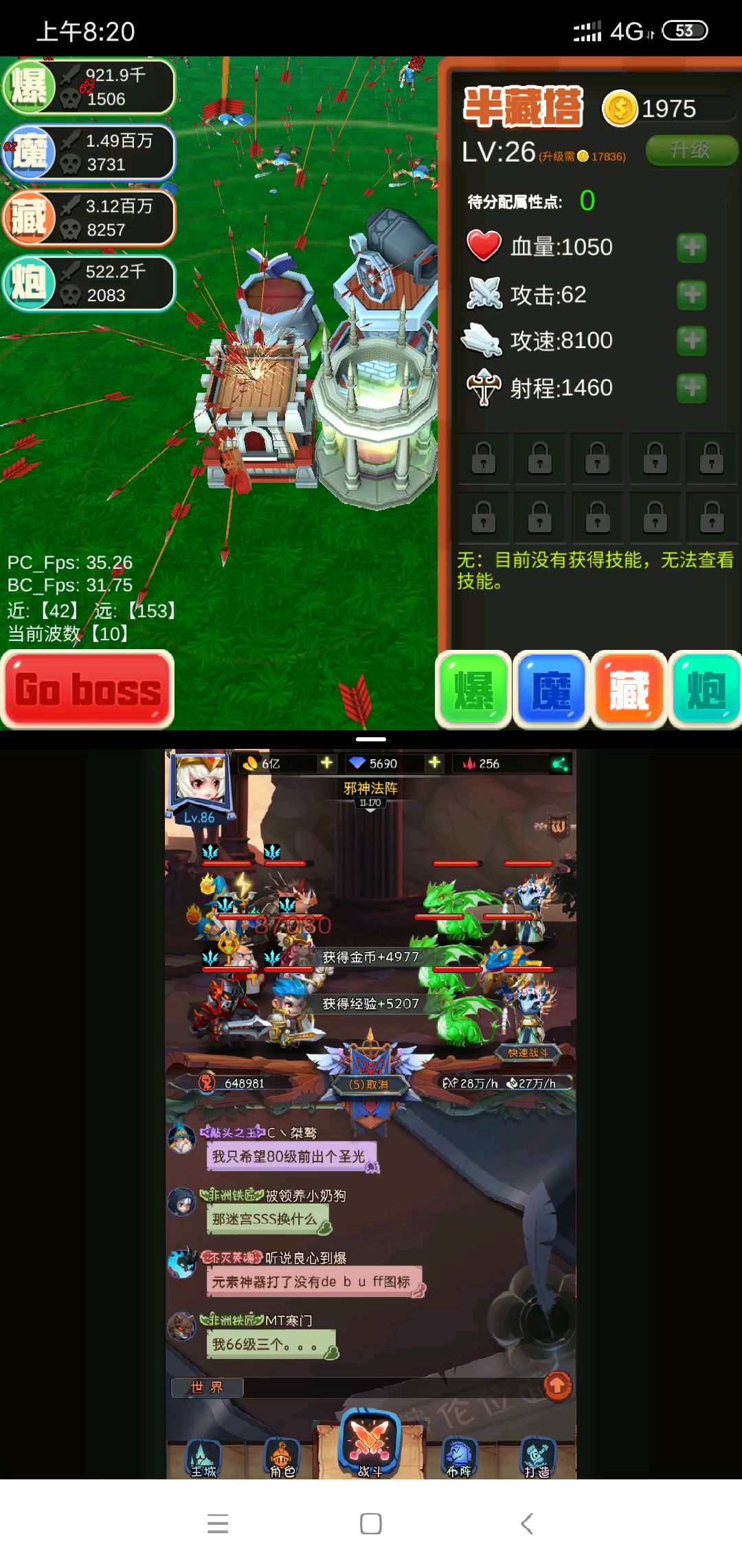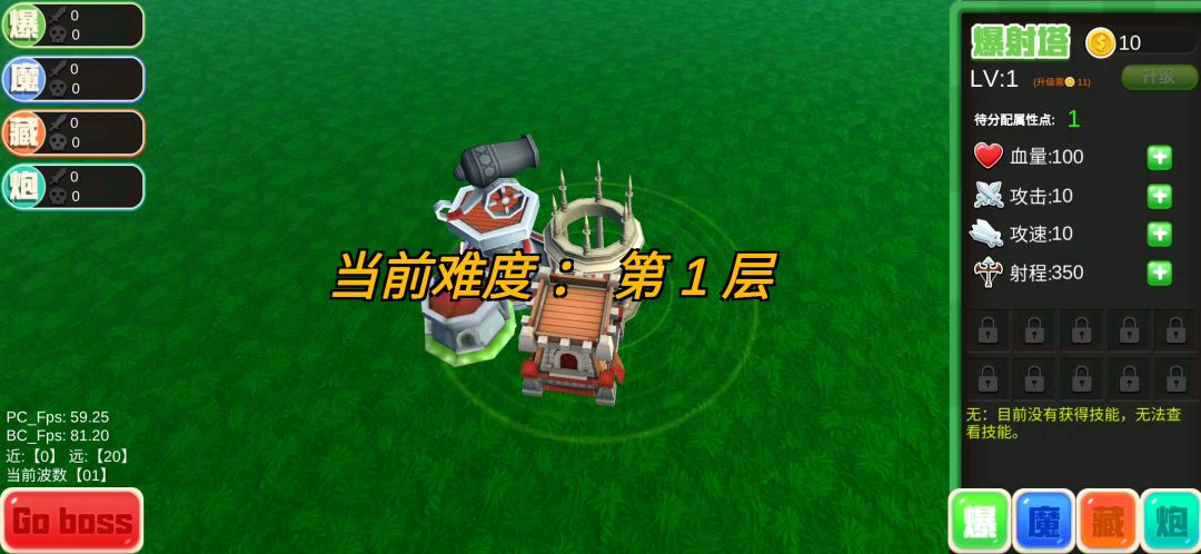 前期先弄爆破。爆破起来的话,刷几波boss,然后还是养箭塔和魔法塔。那个火炮就不用管他了,然后中期爆破塔就点儿血量就可以了,不用加什么攻击了。箭塔速度养到1万。还可以继续养,然后开始叠箭塔的攻击。箭塔攻击叠到100,回头养爆破的攻击范围