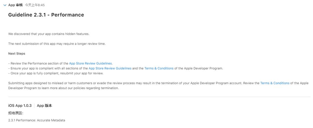 1.0.3.0版本更新消息(IOS审核被拒)