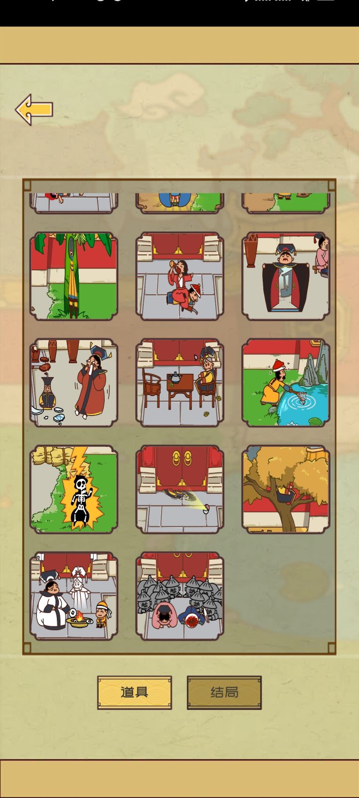 通关了,感觉是溥仪的故事。最后几关有点虐啊,结局令人唏嘘,推开一切出去玩最后没有家了