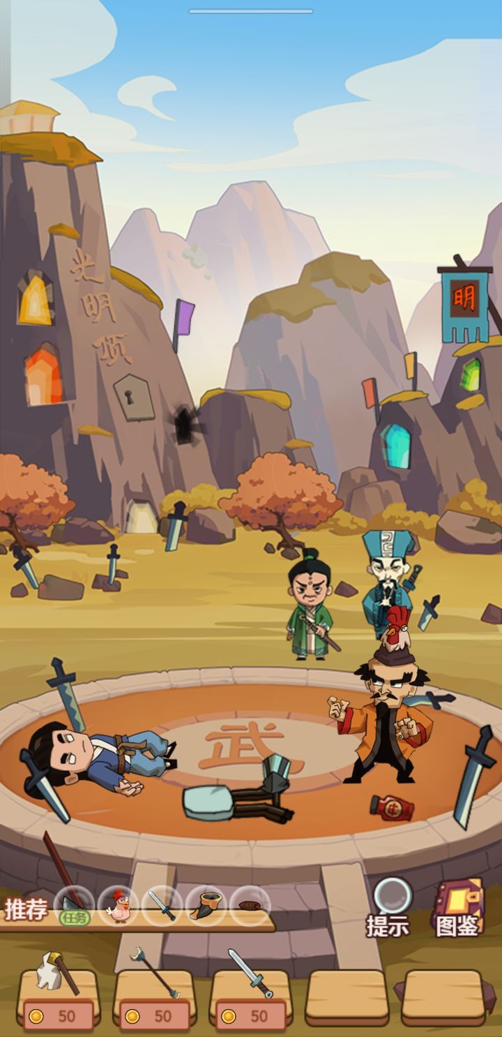 玩法一∶当三只雕分别在图中红框位置时点击成吉思汗,可能会射出一箭三雕