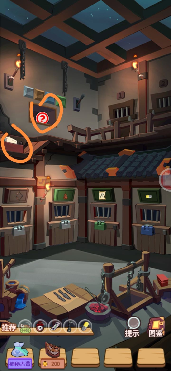 玩法六:贪吃狼烤肉的时候,必须要先有树枝,贪吃狼只有吃了烤羊后,才会被分散注意力,这时就可以拿到它身后的东西