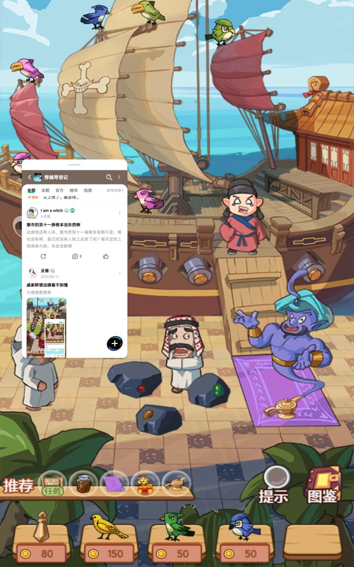 他的气泡可以刷新,你点这个灯神身上能刷新气泡,每次只能点一回气泡,再点就没反应了。他那个气泡会有一个不是首饰的,是他自己头像的气泡,等到刷新出来你就点气泡,他就缩回灯里。不记得不拿灯能不能把魔毯拿起来,不能的话你就拿起来,再点魔毯,魔毯下边还有只猫,最好一次都点了。