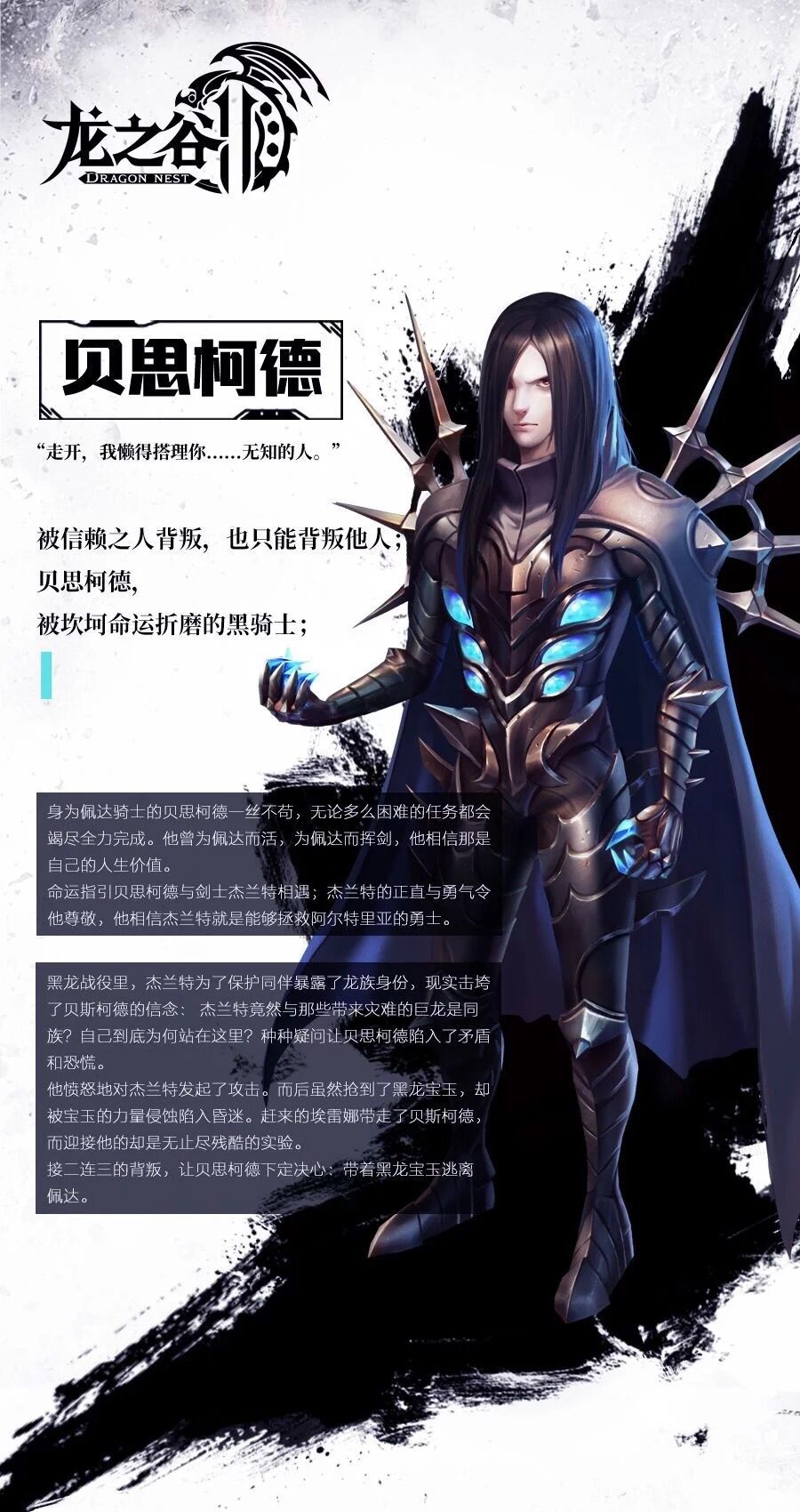 “不管是从前还是现在,你都很没用, 居然会为了他人而丧命。 但是,你可不要以为这样就结束了。” 被信赖之人背叛,也只能背叛他人;贝思柯德,被坎坷命运折磨的黑骑士。 大声告诉我,下一个想看谁?