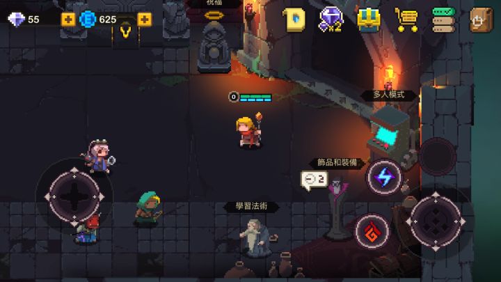 以防有人看不懂,虽然我英文也不咋地qwq有三种祝福,基础祝福,高级祝福和选择元素基础祝福会给你速度,血,钱什么的高级祝福给你更强一点的buff,但是有几率获得诅咒选择元素就选开局三元全部第一次免费(看广告),选择元素的免费过后要5钻石一次插钥匙的地方第一次打败boss就会获得一个元素钥匙,每次插入一个就会解锁更多房间/怪/新饰品据说全部集齐有隐藏boss?大门,地牢入口多人游戏,有组队冒险