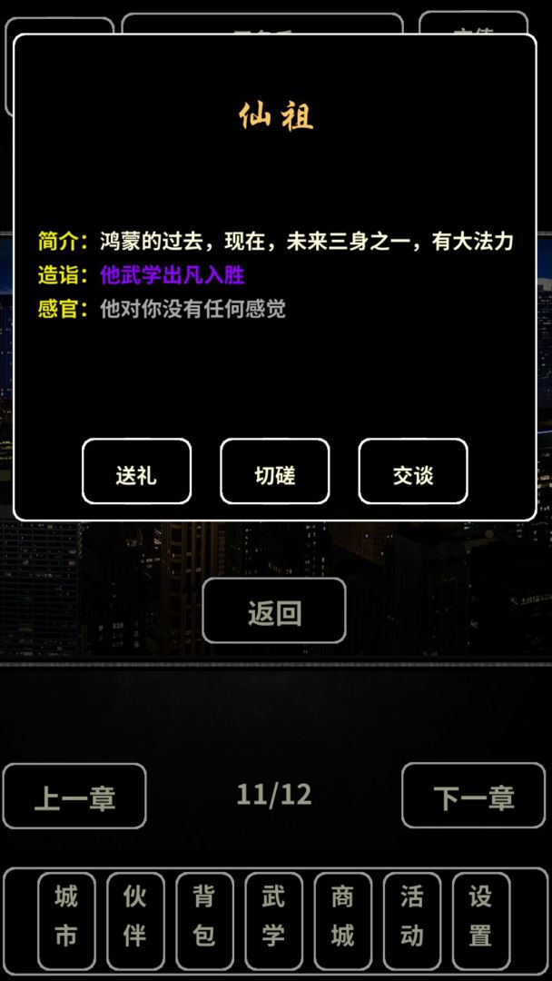 -送礼切磋系统:体验送的礼物越多,NPC越乐意陪你切磋,获得的收益越高。