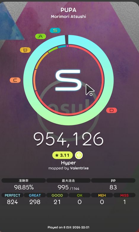 今年二月初入坑的萌新qwq主要打打osu!和mania