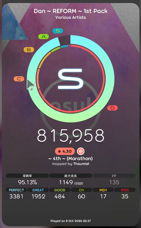 补豪上来就是叠,最后一首更是读谱不太能+底力不够打不动了()附一些其他我觉得海星的()#4k #osumania