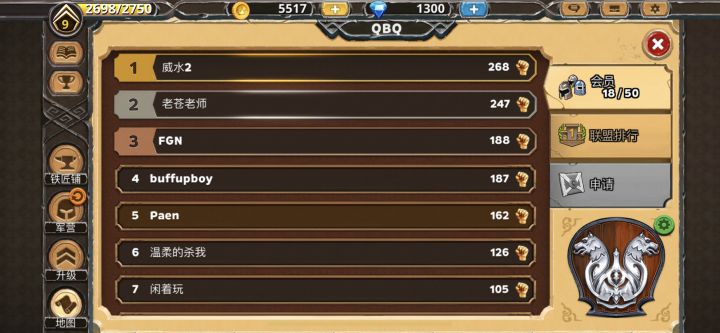 联盟名QBQ 目前有18个人 都是新人 一起进步吧