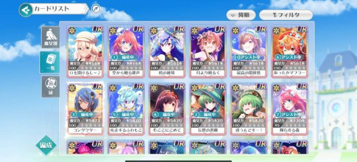 LIGHTs队:羁绊:2人全体增伤1%;4人红珠增伤2%;5人防御增1%妄想的书棚(法术队必备):单体法术伤害最强UR(魔女试炼会送碎片Normal全通后)辉石光的森(必备之一):唯一带复活的卡牌,输出一般,防御力一般,只要她不死,就能一直拉起来,新手任务会送骑士的愿望(特殊副本有奇效):无敌最低血两人,自身50%血一下攻击增加15%,好处是群体伤害时间的秘境(不推荐,物理队可带):