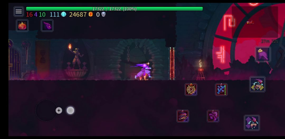 这游戏上个月15号下载的,之前也没玩过端游版的,纯纯的萌新一枚。今天早上七点五十通的关,说实话炼金术师是真的难打,差点想放弃了。 这是通关的配置,我也不知道为什么我的卷轴这么少,没骗卷轴(就算骗了也没超过50张),离谱,伤害也低,不知道那些六七十万的面板怎么弄出来的。 来说说我的打法吧,具体就是苟😂要习惯性的存档,4细胞5细胞的小怪基本上都会瞬移,我都是用飞头把怪引到面前然后一个重弩,尽量无伤,B