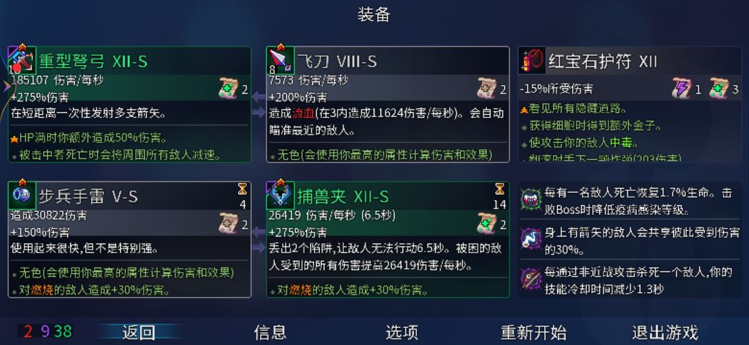 首先,因为楼主是个手残,只有两细胞,正在疯狂肝铸造所……在b站查阅探路的过程中,受到启发,发现这个套路还是挺好用的,祝大家早日5细胞毕业。 几个注意的点 1.必备的变异:绿色 冰之心 打减速的减技能cd,红色 近战 近战攻击造成减速,这两个可以使位移无CD,第三个随意,我用的紫色谋划。 2.必备的技能:位移是核心技能,2秒cd,绿色点到11可以保证减2秒,实际8以上就区别不大了。 3.武器的选择:
