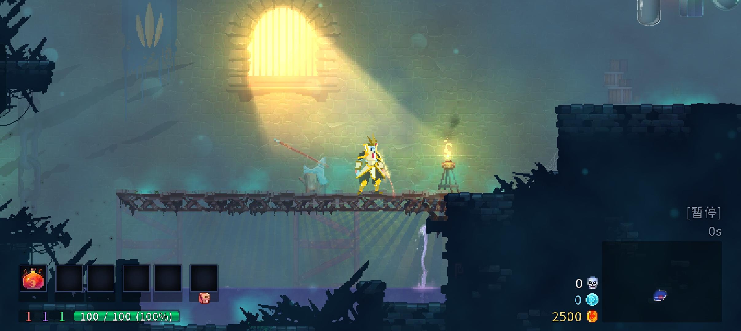 兄弟们,直接上图。 可以看到在守护者的居所左边一点的位置有个小洞 看到白色的横杠 你就会发现那是一个适合跑酷的地方 当然需要一细胞解锁飞头(废话) 建议手残党自带三个血瓶保底 山洞的怪很好打,这个跑酷真的不好跑 最后在这个位置就可以拿到啦