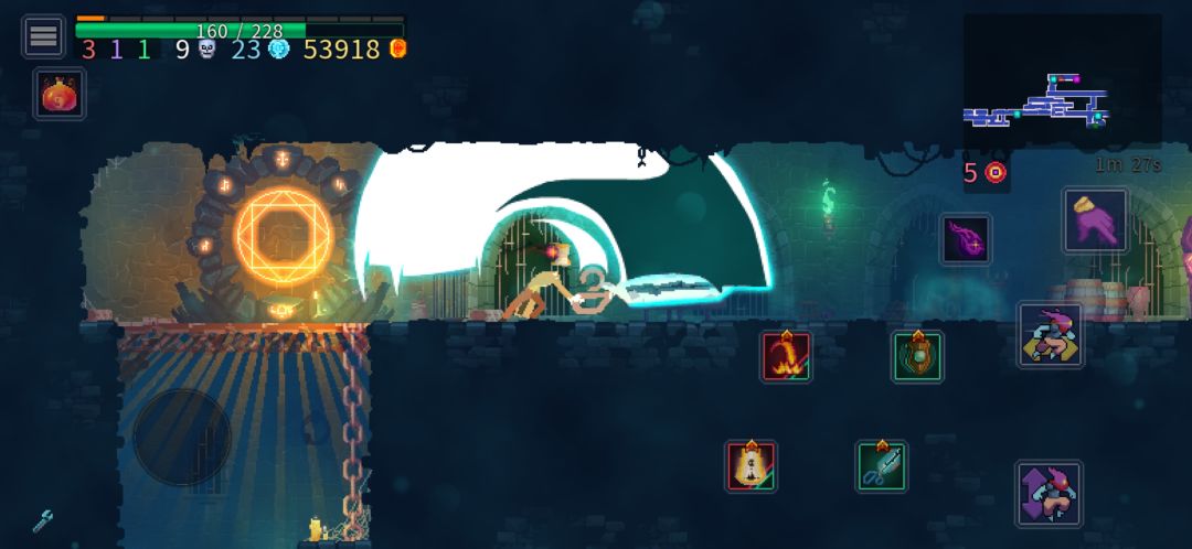 首先游戏的基本属就不用多说了 ,经过我将近600小时的研究,这个游戏你想提升实力最快的办法就是练。 1,基本 首先当你好不容易打到一个boss关卡后被boss干掉了,不要去依靠再去刷一关,再到这个boss面前去攻略他,直接到训练房里右转,就有boss专门的练习地,直接去练他就可以了,通常练到无伤就基本过关。 盾反必须必须练,你盾反都不会,你还玩什么死亡细胞,直接训练房去练盾反,有专门的小怪生成地,