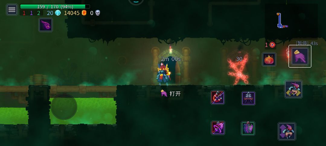 给萌新们几个建议(虽然我也是个萌新),毕竟刚开始的时候我也玩不懂走了许多弯路 第一点,零细胞和一细胞不是一个次元的难度,不要以为你过来零细胞马上就能过一细胞,前期我建议所有的细胞都升铸造所,就是打完boss以后的那个大铁匠那里升级,可以升级出现+,++,s级别的武器,零细胞解锁就可以把+升满了,所以说我建议先去一细胞刷细胞去,不要开武器图鉴之类的,武器图鉴和技能啥的建议从出生点直接跑到下一个地图,开启那个时限两分钟的门,里面有二十细胞,可以在收藏家那里解锁完东西直接重新开始,基本上就是四五十秒二十细胞,但是不能利用这个升铸造所,因为你纯跑图没有卷轴也没有装备(变异看情况,开放性伤口等等可以开,武器建议开重弩重弩重弩重要的事情说三遍)有一点需要注意就是收藏家那里的门是可以干爆的(我原来一直以为不能。。所以说卡在一细胞很久) 第二点就是卷轴不要选血多的,要根据情况,比如说你这局玩红流,那你的卷轴必须有红选红,没有红再选血多的,这样可以防止刮痧 第三点就是这个游戏是可以回档的,你可以在你快死了或者已经死了但是刚显示到掉落多少细胞的地方直接退出清后台,再进游戏可以在你上一个进去的门那里复活(没有进去过门的话就在出生点复活) 武器套装推荐的话 1.重弩+盾+夹子+冰冻雷 单个武器推荐串刺剑(每日挑战七次得图纸,可以通过调手机日期来一天得到,但是不推荐打王手,需要熟练盾反因为王手不吃晕眩)草鞋,(这玩意必须要有墙或者平台,一直踹墙上是一直晕眩,平台是可以利用掉落伤害摔死怪,除了王手大眼巨人其他所有boss都可以摁在墙里踹死),最后,菜就多练练! (打boss小贴士,可以在打王手的时候重制变异,选加百分之五十血量食物不回复那个变异,有这个基本都能2.8w血)