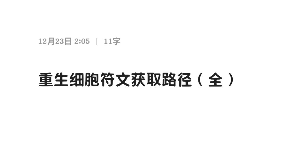 重生细胞萌新必须要看啊! 1.藤蔓符文 获取途径:有罪者大道(第二张地图,即被囚者牢房→有罪者大道路线)击杀精英怪-弓箭手(困扰的“挠一挠”终于可以解决了😂) 2.传送符文 获取途径:被囚者牢房一猛毒下水道路线,「猛毒下水道」的牢窗附近中触发任务后,然后杀死精英怪三刀哥 3.牧羊符文 获取途径:也就是下坠震地,被囚者牢房一有罪者大道一藏骨堂路线,击杀三刀哥精英怪 4.蜘蛛符文 获取途径:打完黑色大