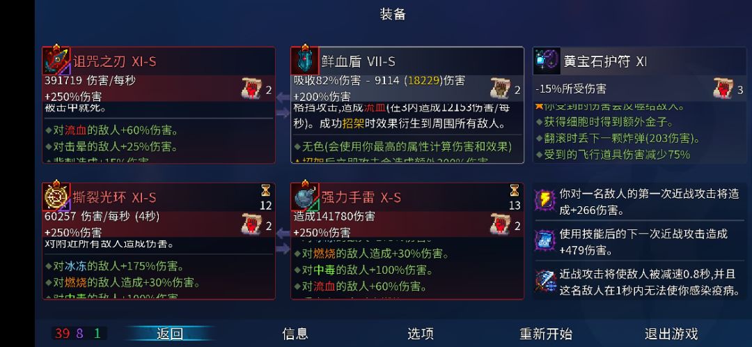玩了100局68小时左右打完五细胞,想开荒的小伙伴可以看看 【路线: 囚牢-有毒下水道-腐化牢房-旧下水道-地牢-沉睡庇护所-山洞-守护者-山巅城堡,刷全图,最后一般都是35左右卷轴数,好运的39】 一. 1-3细胞推荐堆绿流重弩,操作不太好的可以在带个药剂,所有装备刷出绿色卷轴,王手站撸都打得过,变异带死灵弹药翻倍,另外一个变异随便都行。 二: 4-5细胞红流和紫流都可以,我推荐紫流咒刃(紫流技