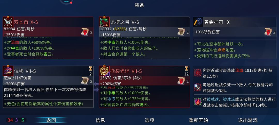 用第一关的诅咒宝箱开出来的撕裂,走的巨人路,然后无伤门拿的堕落力量(刷出加速),下水道拿到的刺剑,剩下那个建议流血盾,打巨人好点,然后其他的,跟着学就好,就有手就行了