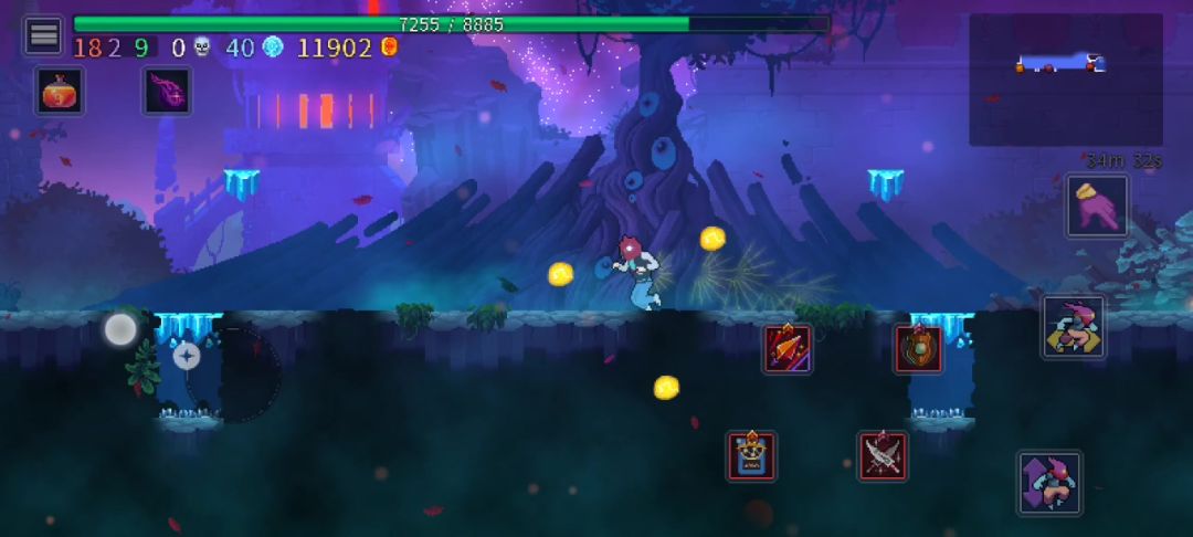 端游1.6萌新,前年通了收藏家就没怎么玩过了,手游一出终于有更多机会能搓一搓了~ 刚入一小时过了0细胞,放个小教程吧。 大伙有兴趣的看看就行。 1,站在斩首台和火把中间,跳两次飞头不停按跳,跳到上边的台阶(注意不要拉的太远头飞回来了,控制好距离), 2,往右二段大跳,贴到右边的墙上,慢慢往下滑(不要太快,不然掉下来了),滑到绿叶🍃处钻进去, 然后顺着道直接摸进去就拿到啦~ (这里我拿的时候忘记录了