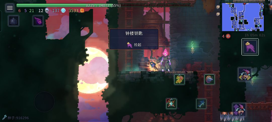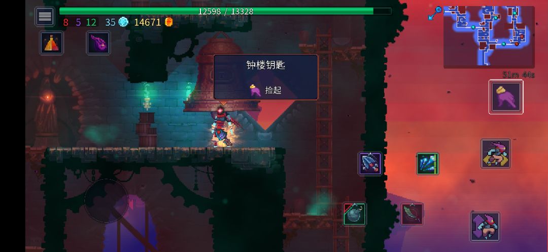 按照钟发出的音调从低到高敲击 可以把游戏音乐调低 仔细听音调 这张钟楼图的敲击顺序如图 中途敲错需要重新敲击 一共四处 顺序对了会掉落钥匙#重生细胞