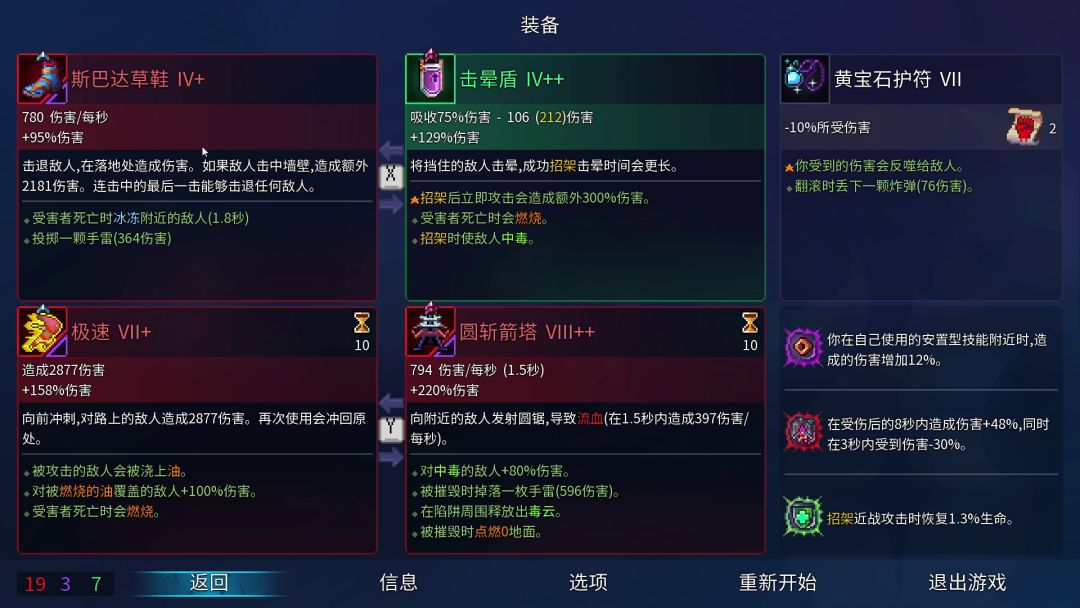 首先游戏的基本属就不用多说了 ,经过我将近600小时的研究,这个游戏你想提升实力最快的办法就是练。 1,基本 首先当你好不容易打到一个boss关卡后被boss干掉了,不要去依靠再去刷一关,再到这个boss面前去攻略他,直接到训练房里右转,就有boss专门的练习地,直接去练他就可以了,通常练到无伤就基本过关。 盾反必须必须练,你盾反都不会,你还玩什么死亡细胞,直接训练房去练盾反,有专门的小怪生成地,