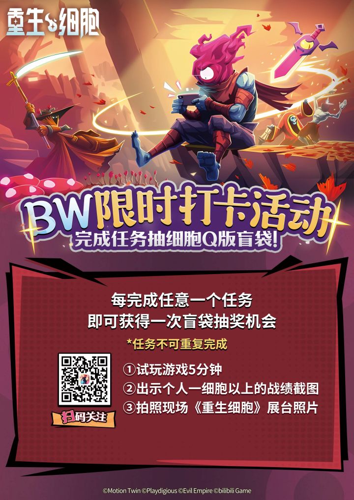 亲爱的各位新老细胞人们,《重生细胞》将于2025年7月11日-7月13日举办的“BW2025”中参展!现场准备了丰富多彩的抽奖游戏有机会赢取精美细胞周边,欢迎各位细胞人届时前往展台游玩!除此之外,今年细胞还联合众多哔哩哔哩游戏联名了IP典藏票哦!购买IP典藏票中的“哔哩哔哩游戏-典藏票”还能获得大量精美周边哦! 更多信息后续将在官方账号公开,敬请关注! 活动时间:2025年7月11日-7月13日活