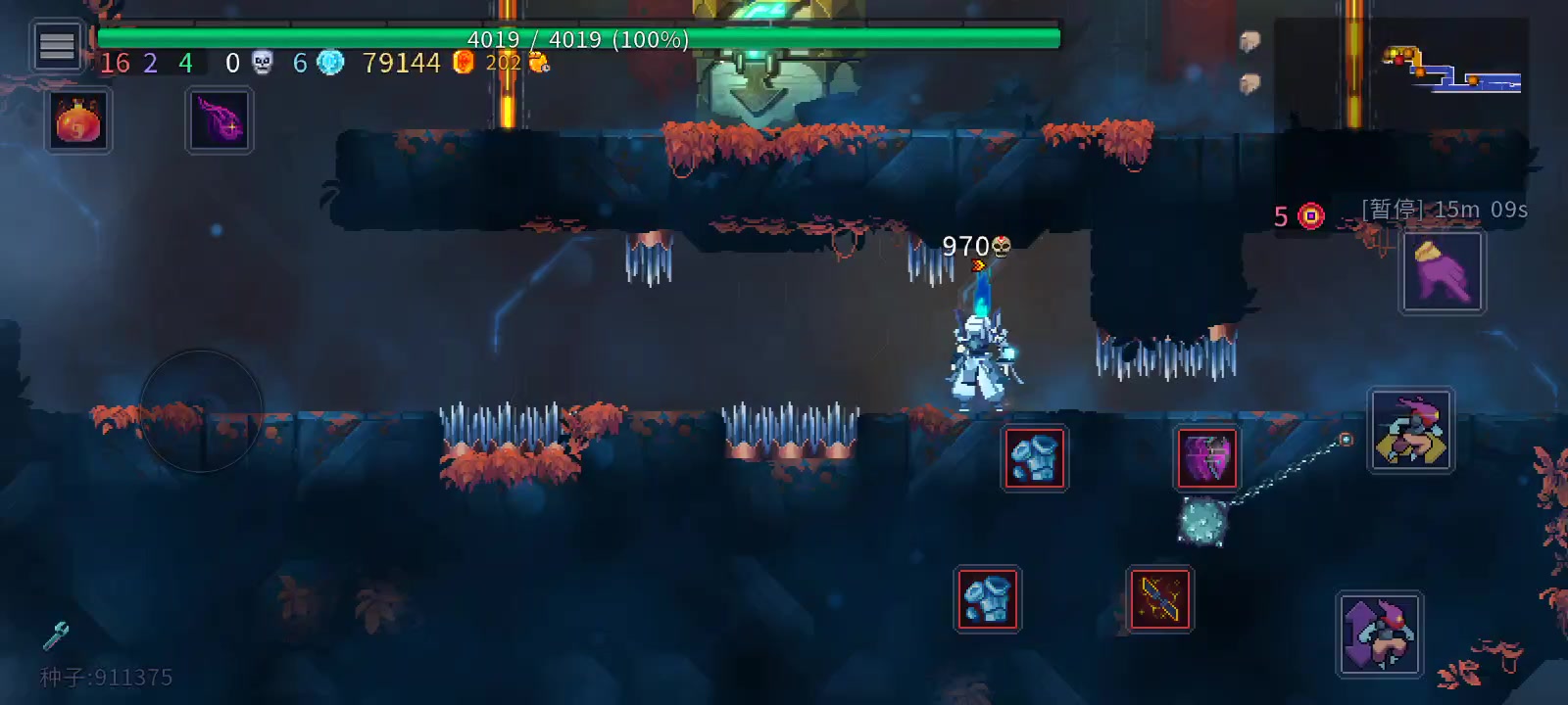 出生点图纸这样拿哦 获取蜘蛛符文并通关一细胞后 粘在上面然后跳到对面去 贴到对面墙的时候#重生细胞 要翻滚一下才能进去 要不飞头就飞出来了