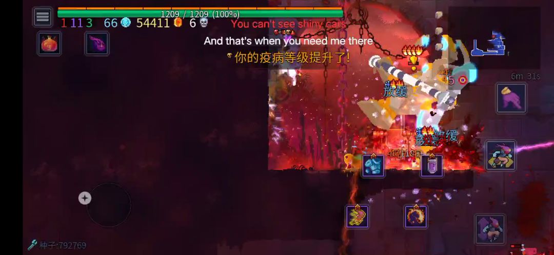刚好在上一关捡到一把咒刃,不过有点菜,刷了八九次,中间还存了个档才过的(不过白王是真的香😂)