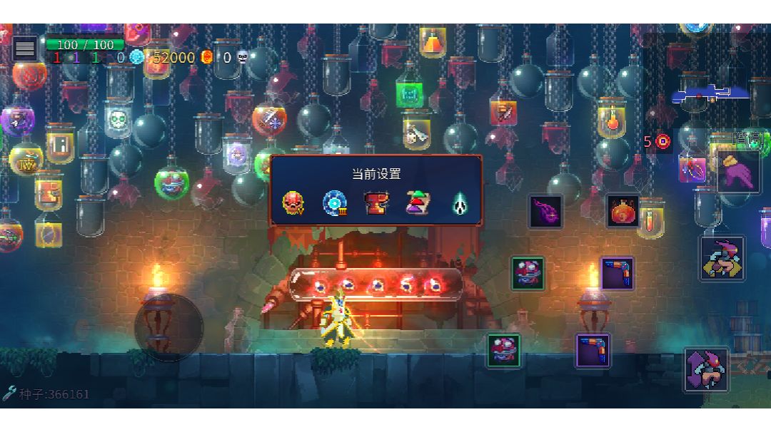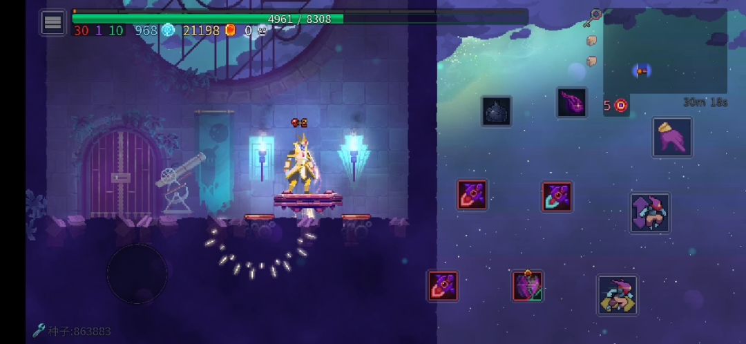 这局真是天胡开局,玩的自定义,种子366161,武器只开了蘑菇君,回旋镖和那个匕首,到崩坏神庙解锁了夜歌并拿到金色夜歌刷出来了护盾,在崩坏神庙金武房拿了个金色蘑菇菌,最终拿到白王😃😃