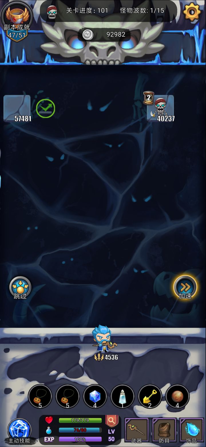 升级的技能再选择一个概率冰冻的技能无限冰冻刷到吐血实在不想刷了退出去了小南瓜头道具可以在砖块或者怪物到最低层的时候使用一个不过到100关都一直无消耗如果想刷感觉能到120+