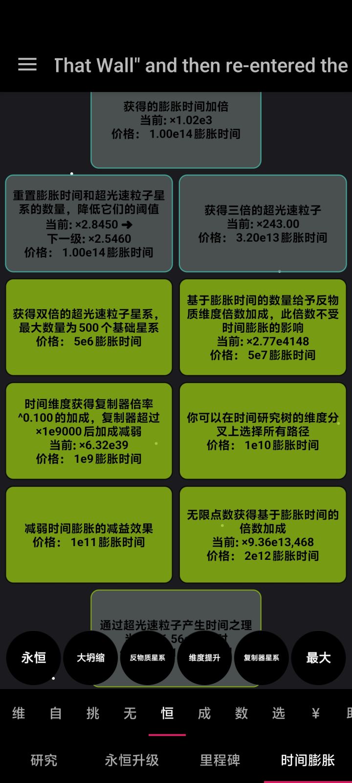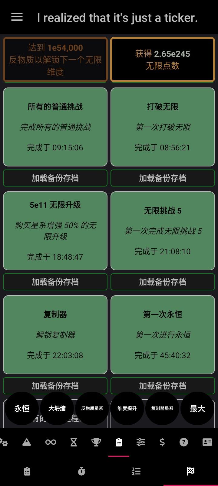 50天通关,手机版只到永恒点数大约1e4000和超光速粒子大约1e9就可以结束了。有卡关的可以问我。