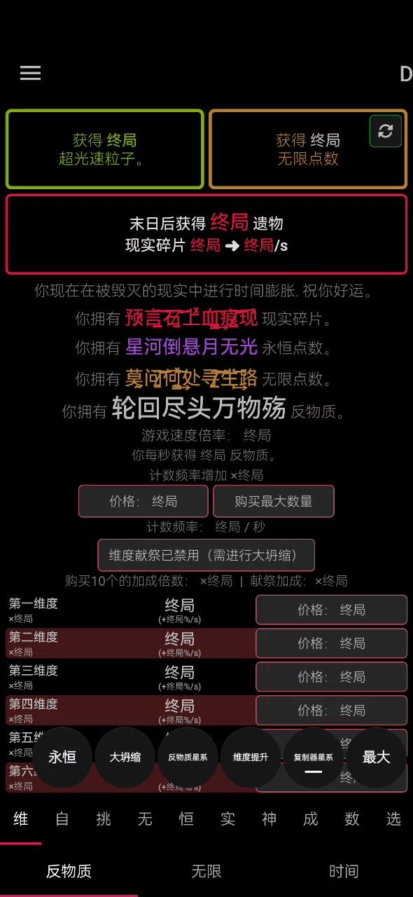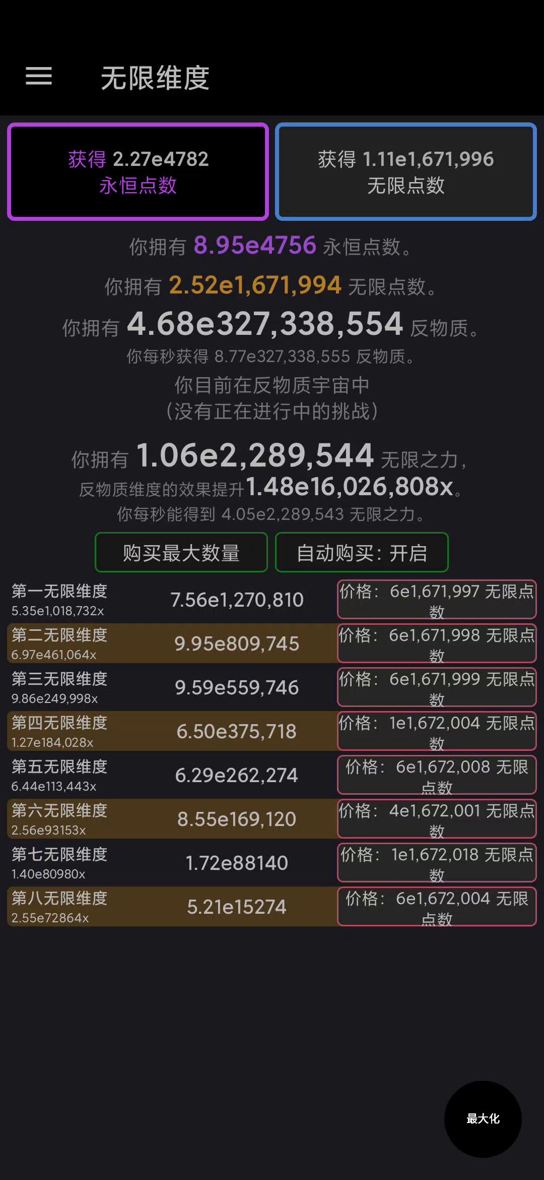 细水长流,停了维度提升和星系,停了无限维度手动慢慢点60s就行了