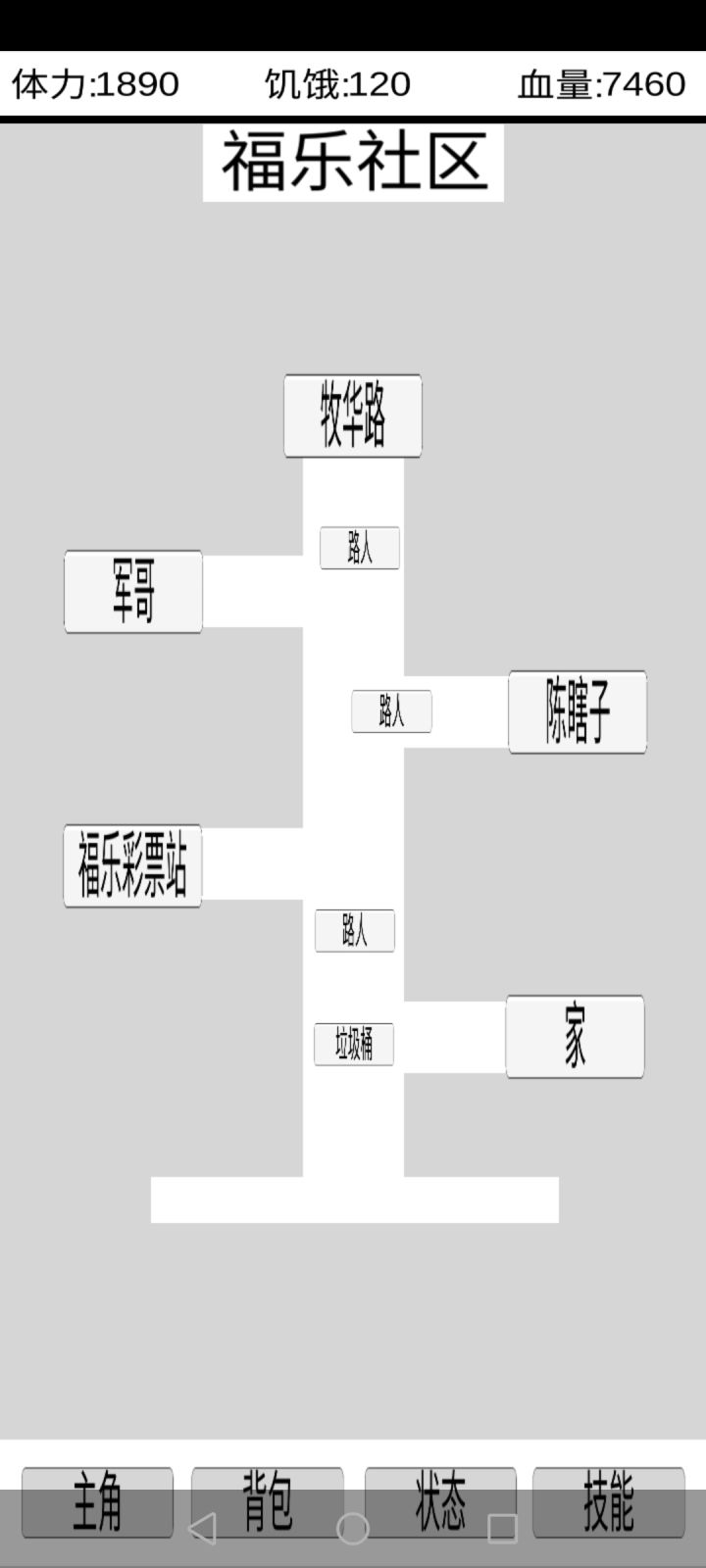 进去后。外出点路人帮忙,然后去赌博,出1000-8000就一直买,满了出来进去接着买,基本就是无限金币了,然后去车站集市买鱼肉10块钱一个,买1000多个吧。回去厨房做清蒸鱼,出极品清蒸鱼,一条25饥饿加4血量,,一直睡觉出去拳馆锻炼,一天2点攻击平均。也不用制作武器之类的。就这样几百攻击,血量上千。出去随便打,