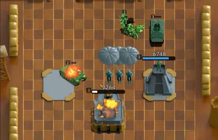 《暴走玩具兵》已经火爆开测,各位将军有没有玩的开心呢?本期小编为大家带来一个新的思路,地形卡位清兵打法,相信对不少陷入瓶颈的玩家有帮助哦!首先《暴走玩具兵》的单位是有体积判定的,因此重装单位在中线是可以形成互相作用,将战线固定在中场,这样的好处是可以避免单位直接被敌方堡垒打击,尤其是可以保存飞机的血量,扩大攻击的时长。一般来说坦克、装甲车都是很好的用于卡位的单位,在僵持住后,下直升机、无人机等