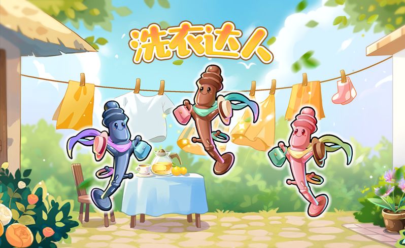 洗 衣达人上线啦!鱼友们快来一起成为勤劳的洗衣小行家,和美丽的仙子鱼见面。 一、去晾洗 目标:收集熨斗、黄蓝芬芳精灵。 消耗体力去晾洗,完成晾晒和清洗任务。 晾晒任务:长按蓄力按钮,在最大力度时释放,帮助小白晾晒更多的袜子。蓄力达到最大值还可以开启福袋并累计进度,可以领取进度奖励。 清洗任务:选择洗衣液清洗衣物,成功将脏衣篓中的衣服全部清洗干净即可过关。 二、去整理 目标:收集小花、粉精灵芬芳。 消