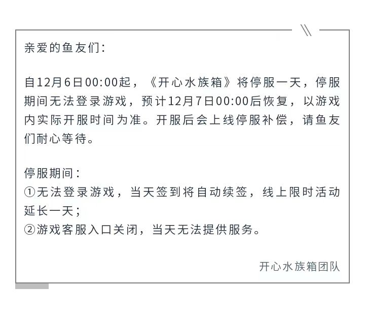 【重要通知】12月6日游戏停服公告