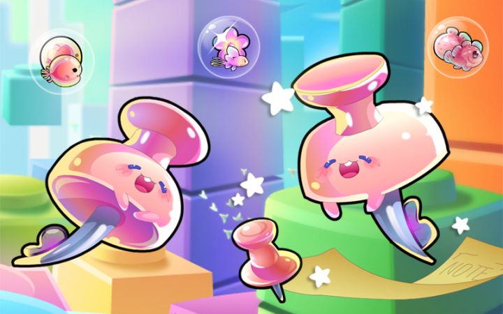 限时融合的文具系列更新啦!收集图中所需的粉色系宝石,来融合一只活泼可爱的粉色小图钉叭!~