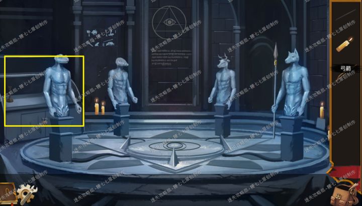 攻略组攻略优化更新,希望大家继续提意见给我们,攻略组会继续加油的!👉-神殿-☃️1、终于到达神殿了,这里应该有密道就可以出去了。☃️2、在左边的架子上找到木棍蜡烛以及弓箭。☃️3、把蜡烛放到左边的烛台上,左边板子上出现密码3486打开桌子上的箱子,拿到一把斧头。然后把斧头和木棍结合得到一把斧子。☃️4、用斧子把柜子上面的锁头砍掉,得到一把剑。☃️5、根据后面墙上的图案和石像的样貌,把相