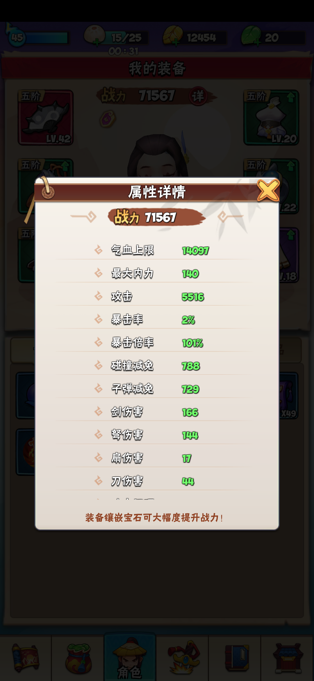 战力是没带宠物的,带上就是14w多一点,视频我也发了,前三个boss依旧是很好躲,没啥难度,最后一个boss也是有点佛系的样子,技能没那么花里胡哨,适应一下就好了,这是第二次打到20关,我也没想到能过,面板属性是血3.6万,摸了3个气血大,攻击1.3万+扇子攻击2000,没有摸到攻击穿透简单说一下吧,他那个线的技能,随便走位就过了,然后放激光,也好躲,然后又是线,这时候他会冲刺到你的脸上,然后有