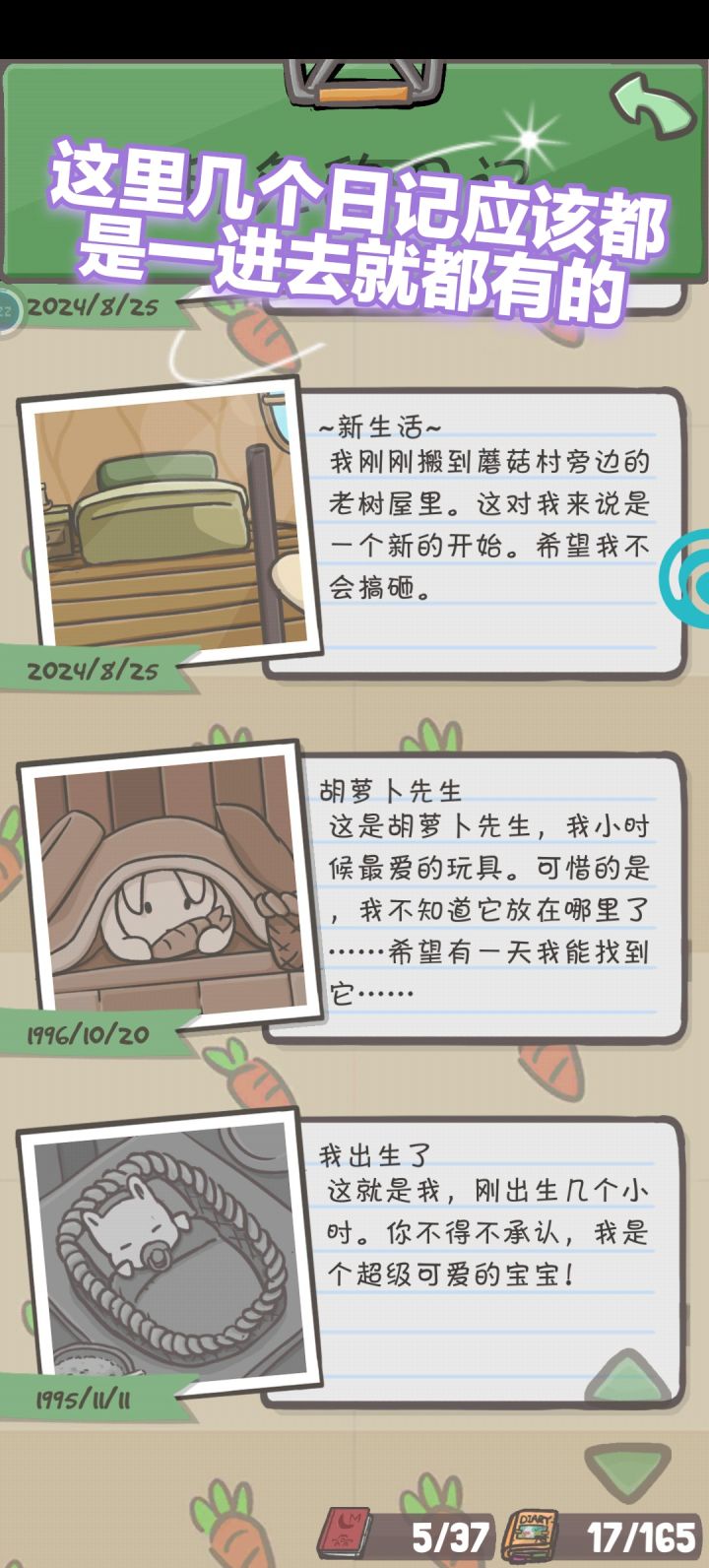 兔兔们 ,有几个事儿需要告诉大家伙一下1 还在玩老版本(2.0.48以前)的童鞋(2021.11之前未更新,没有重新注册过的版本),从今天开始可能无法观看广告了---由于现在无法下载,因此广告不能开启。请想要快速获得胡萝卜的小伙伴选择魔法“时间加速”。2 如果想要更新到新版的童鞋,请注意(从2.0.47更新至2.0.48以后):1)请保持手机时间是对的!!!否则无法继承存档!!2)请不要删