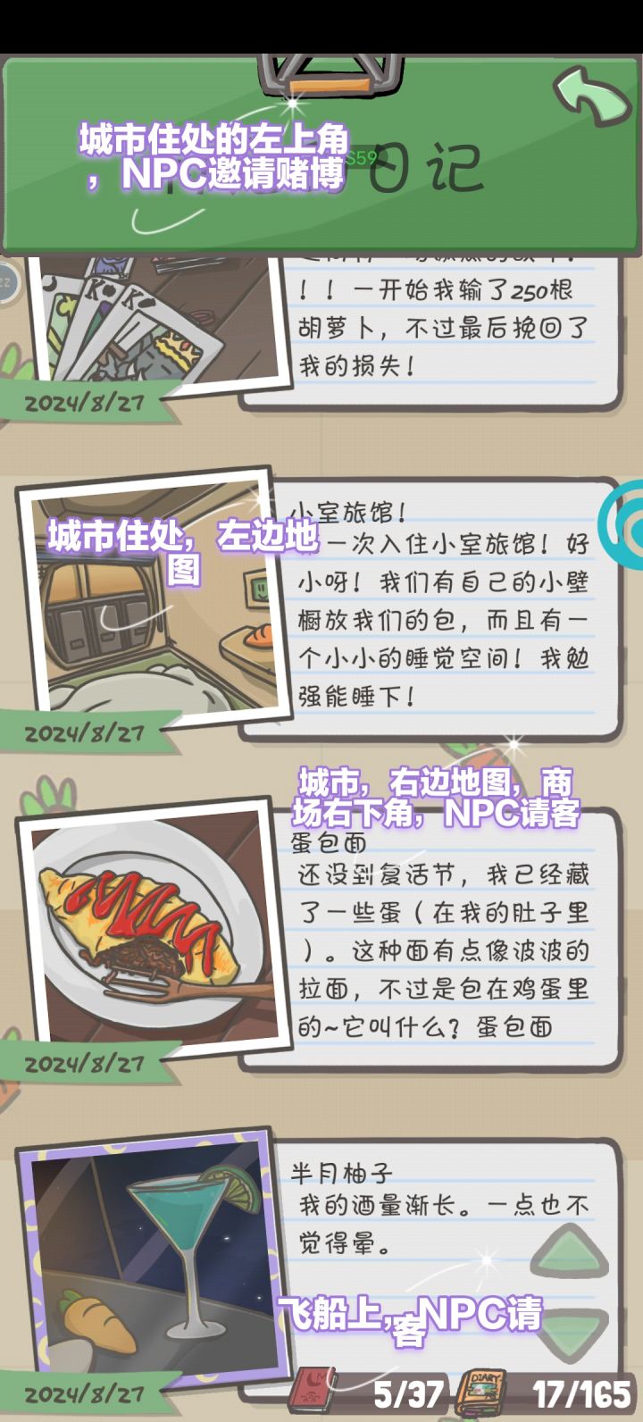 首先是贫民窟的(之所以是叫贫民窟,因为我不知道他本来叫什么,但只有穷人才能进去,自认穷人啊~~所以就叫贫民窟啦)胡萝卜低于1000就可以进去[克里夫]~~~调酒师,不相信外星人的存在,哈哈,和他聊天知道的。刷好感度的刷好感度的时间:(上午12:00-4:00,下午8:00-12:00)。是通过不断的调时间,来刷好感度,每条一个小时,点击三下人物,与他对话。多进行几遍,好感度刷的比平常快一些。好感