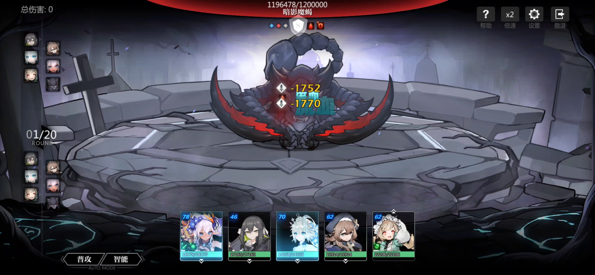 女王给双倍,星见二系双减防,伽瓦娜物伤拐,阿卡开减伤抗BOSS大招 10回合前随便打打保证存活攒满怒气,10回合叠满莉莉被动爆伤,11、12回合,2回合4刀暴击斩杀
